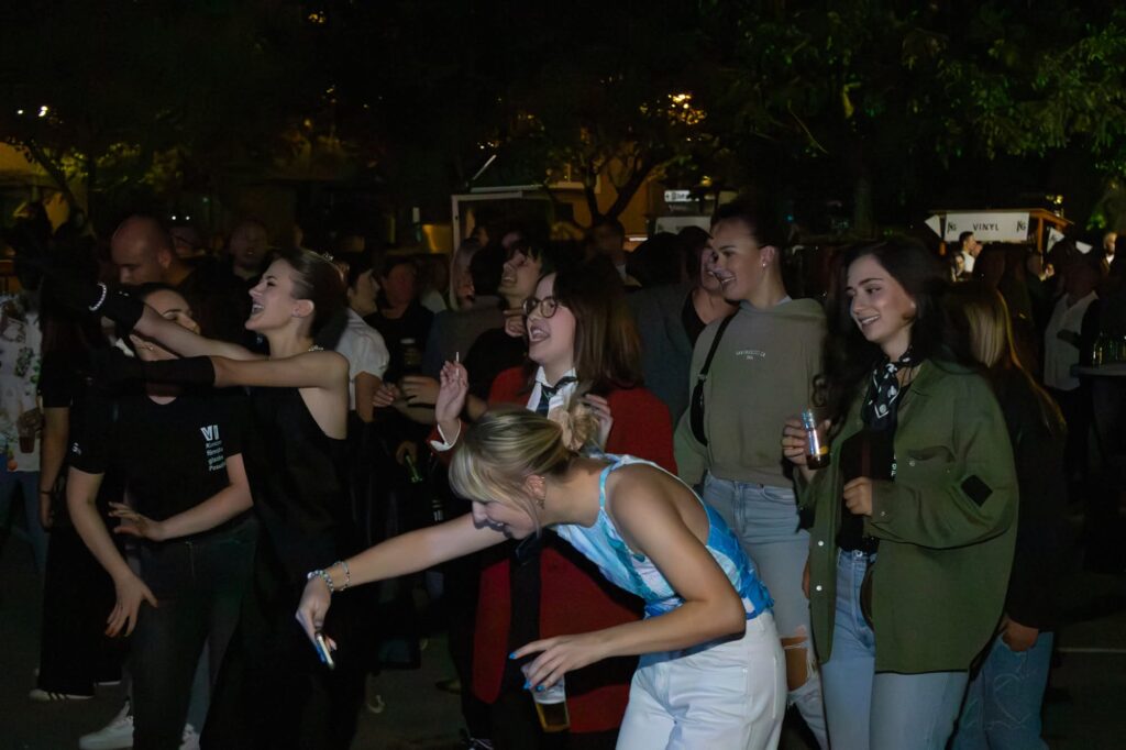 Nekoliko koraka dalje, na drugoj pozornici ispred ulaza u Kinodvoranu na vinyl afterpartyju publiku je u prošla vremena vratio DJ Šef nizom bezvremenskih hitova koji bude nostalgiju.