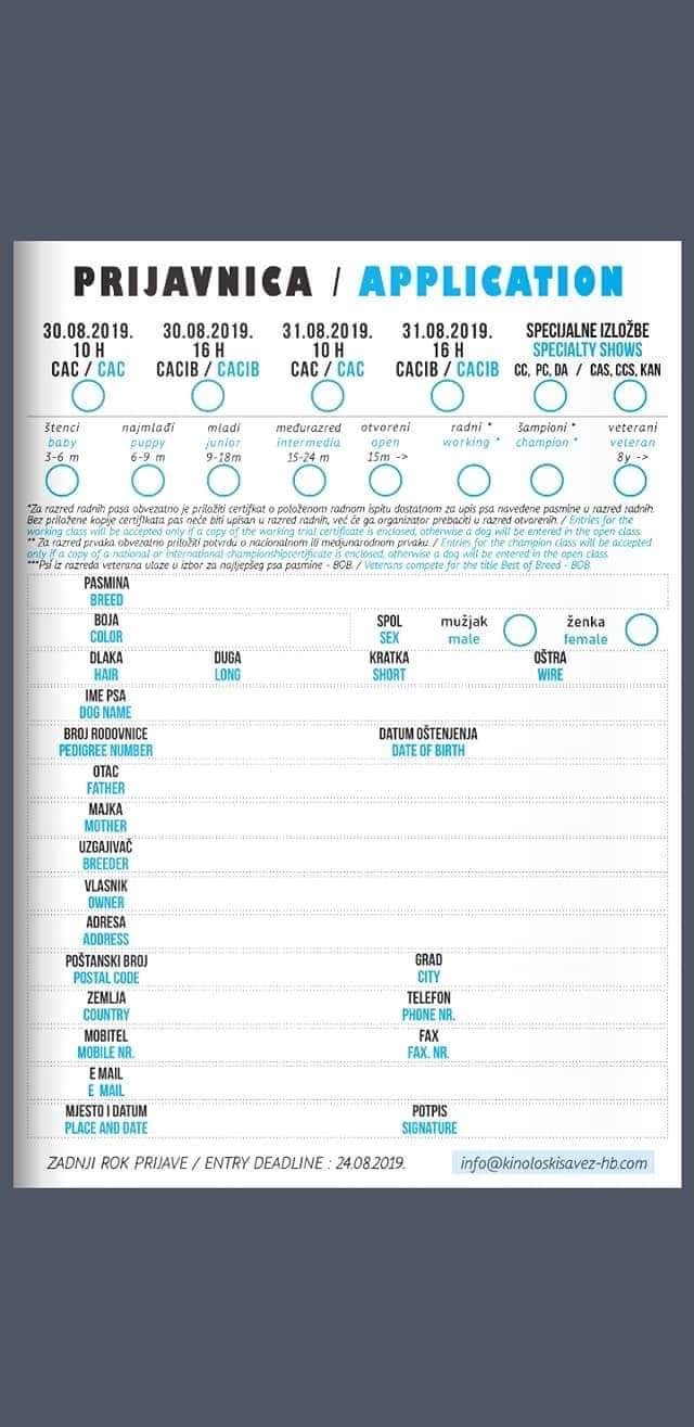 Podsjećamo kako nas veliki kinološki spektakl očekuje krajem mjeseca kolovoza i u Posušju, za čiju su izložbu u tijeku prijave.