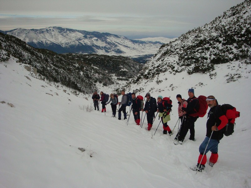 Nedjelja je planirana za uspon na Veliki Vran (2074m). Opet krećemo u rano jutro sada već spremniji na zahtjevni teren i snježnu kosinu koja nas očekuje… No na naše svopće zadovoljstvo dočekala nas je ugažena staza što nam je uvelike olakšalo uspon. Naš vodič Kolombo pogađa ritam grupe i vrh ispenjajemo, bez stanki, za nekih 2 sata. Radimo kratak predah na vrhu i nakon zajedničke fotke za malo više od sat vremena smo opet kod kombija ispred Hajdučkih Vrleti. Dalje slijedi već ritualno ručak u Vrleti i povratak doma u popodnevnim satima.