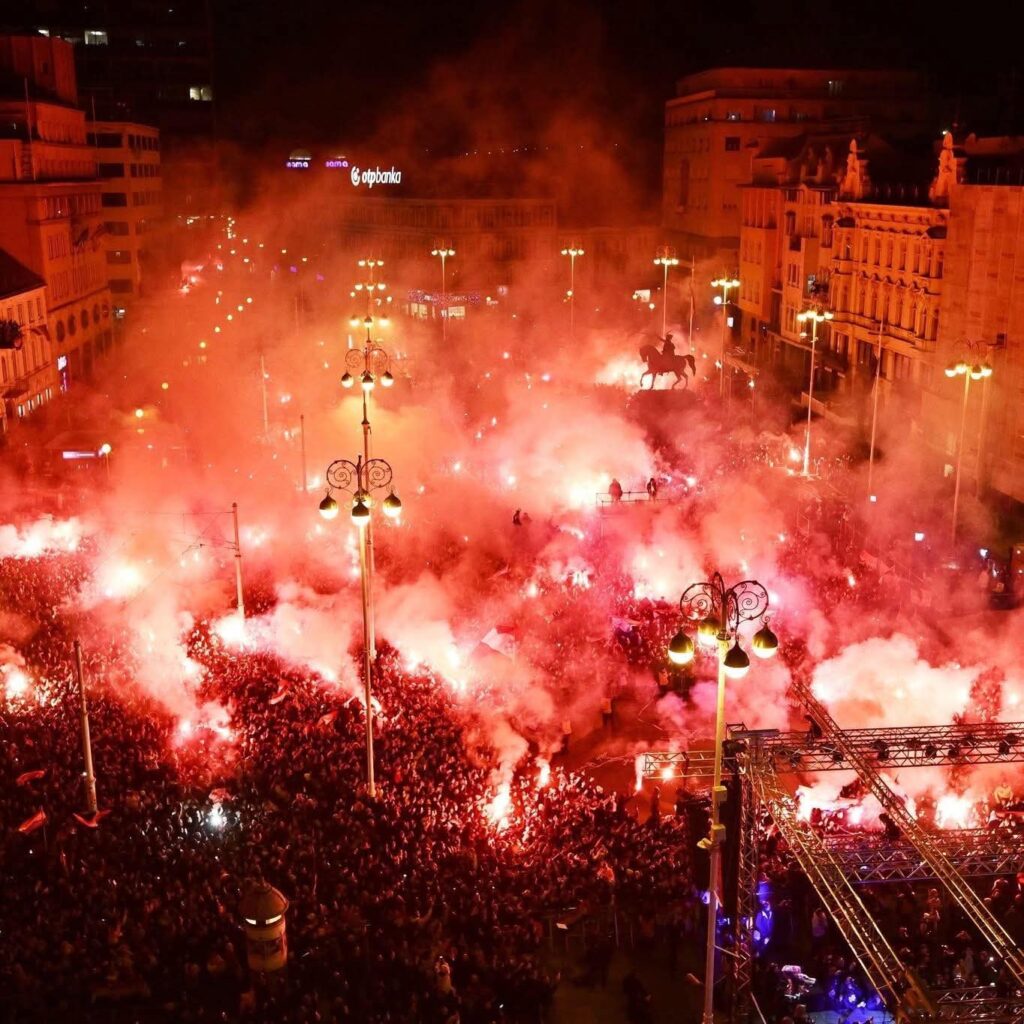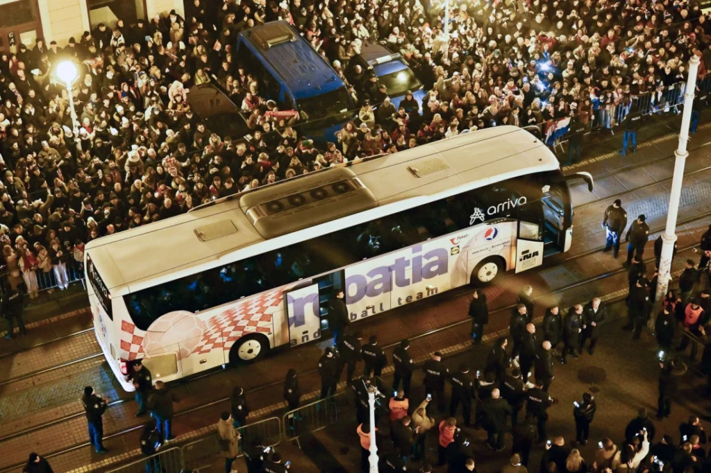 Središnji zagrebački trg punio se navijačima još u ranim popodnevnim satima, uz brojne hrvatske zastave s natpisima iz svih krajeva Hrvatske, a ozračje na trgu prije dolaska rukometaša zagrijavali su Zaprešić Boysi i Hrvatske ruže.