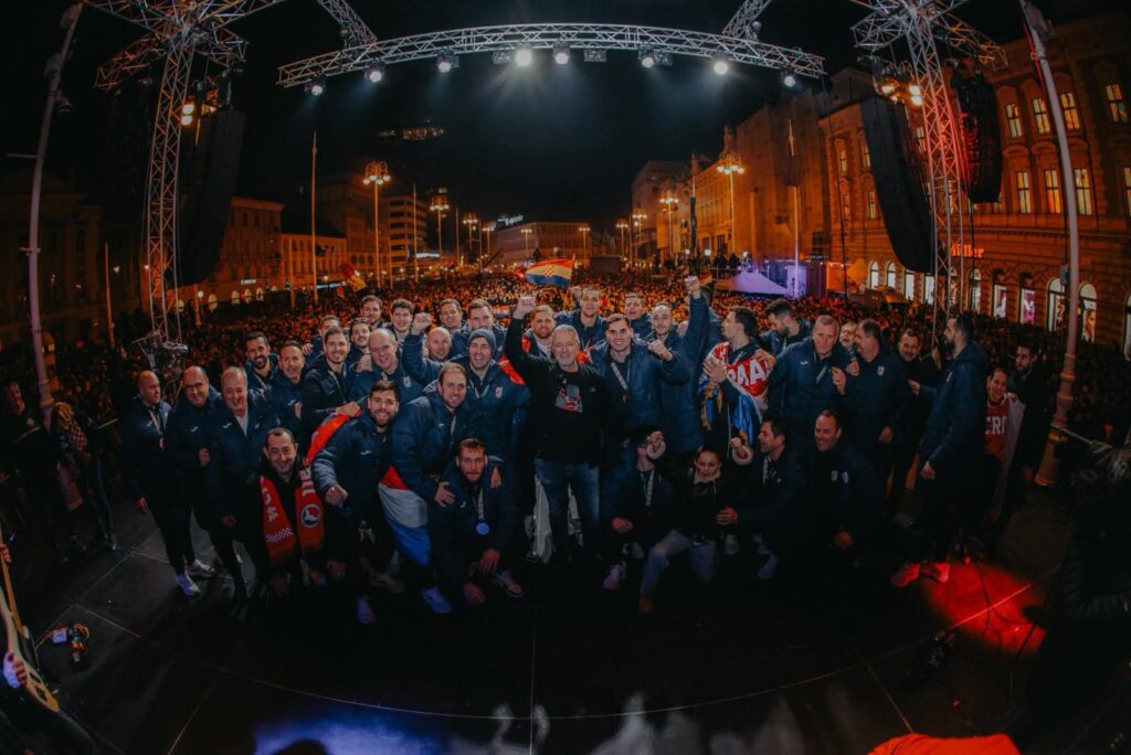 Hrvatski rukometaši su na pozornicu stigli oko 18.40 prevođeni izbornikom Dagurom Sigurdssonom. Uzvici oduševljenja popratili su izlazak svakog od rukometaša na pozornicu, a pravi delirij je nastao kada je kapetan Ivan Martinović donio pokal za treće mjesto.