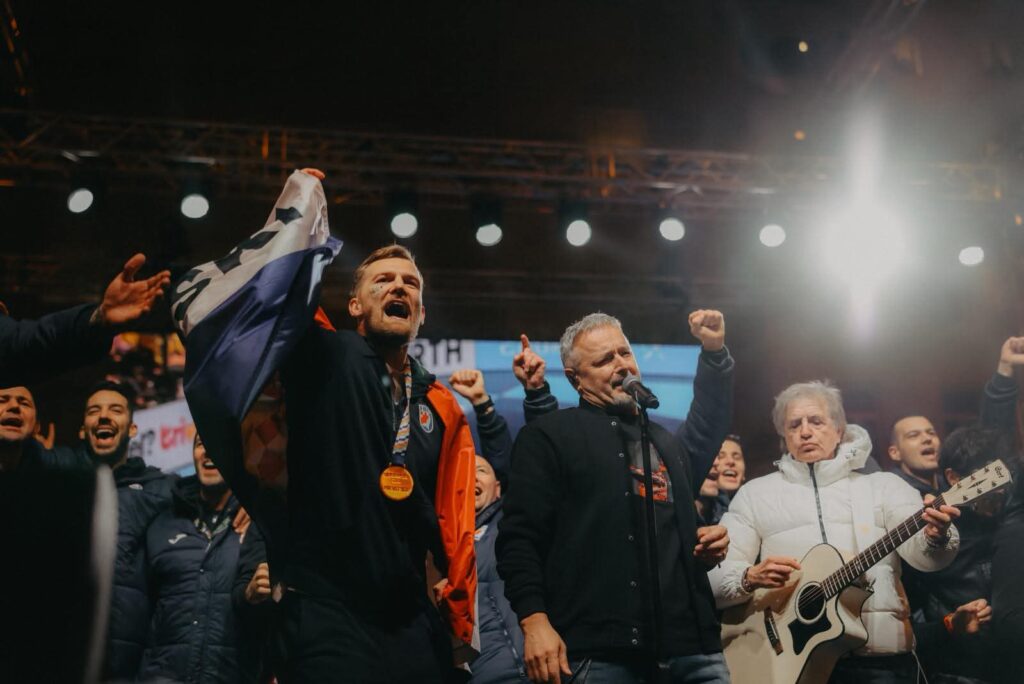 Nakon Sigurdssona na pozornicu je izašao Marko Perković Thompson, otpjevavši svojevrsnu himnu rukometaša “Ako ne znaš šta je bilo”.
