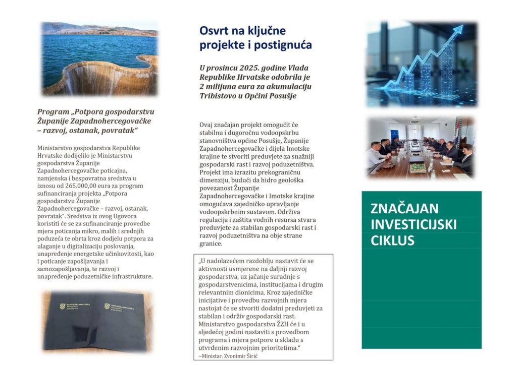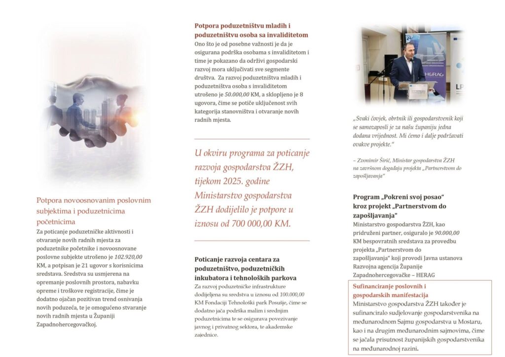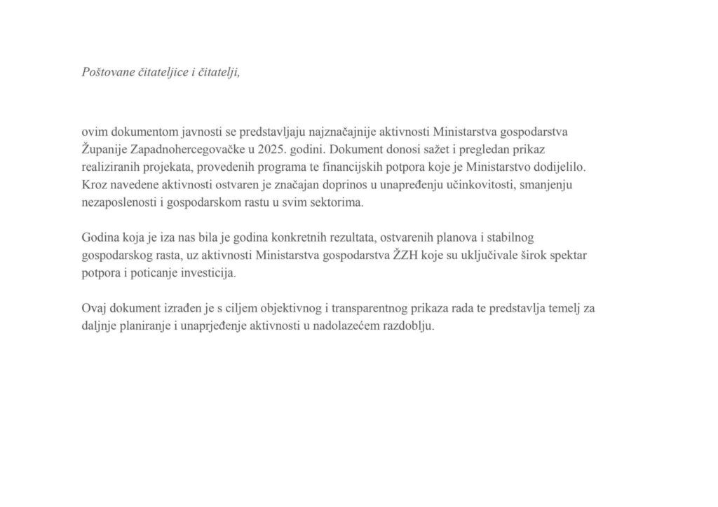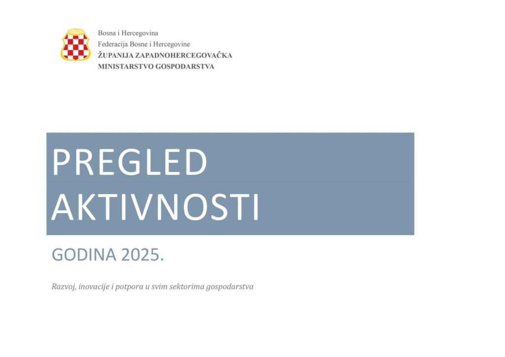 Ministarstvo gospodarstva Županije Zapadnohercegovačke predstavilo je dokument sa najznačajnijim aktivnostima ministarstva u 2025. godini.