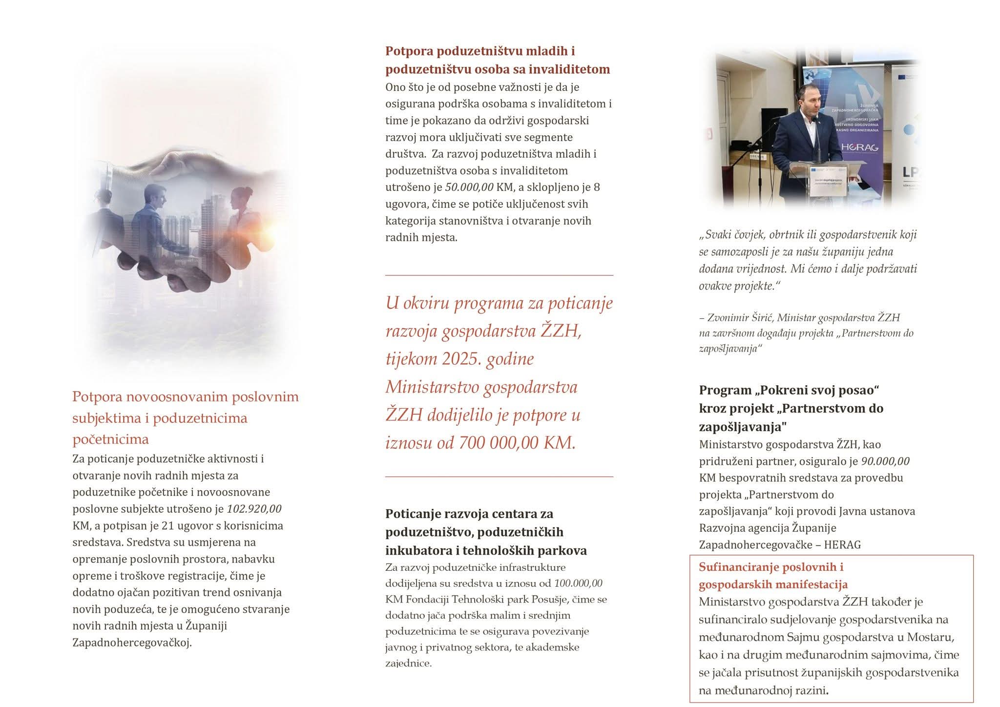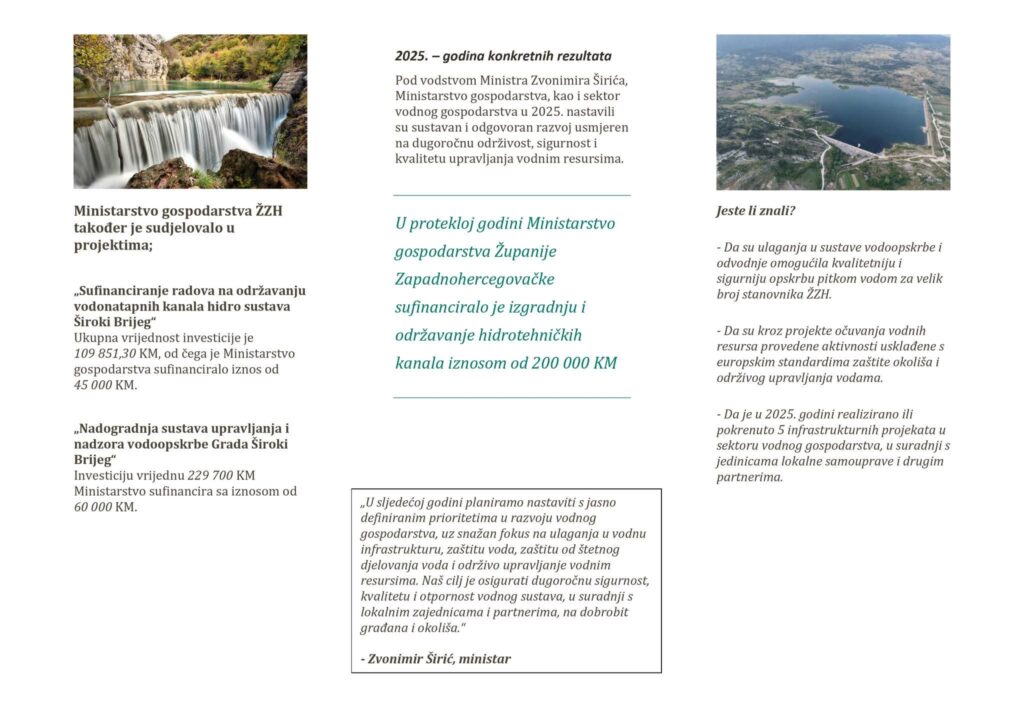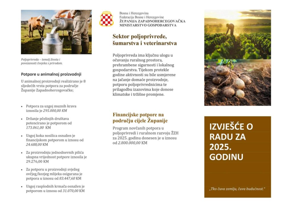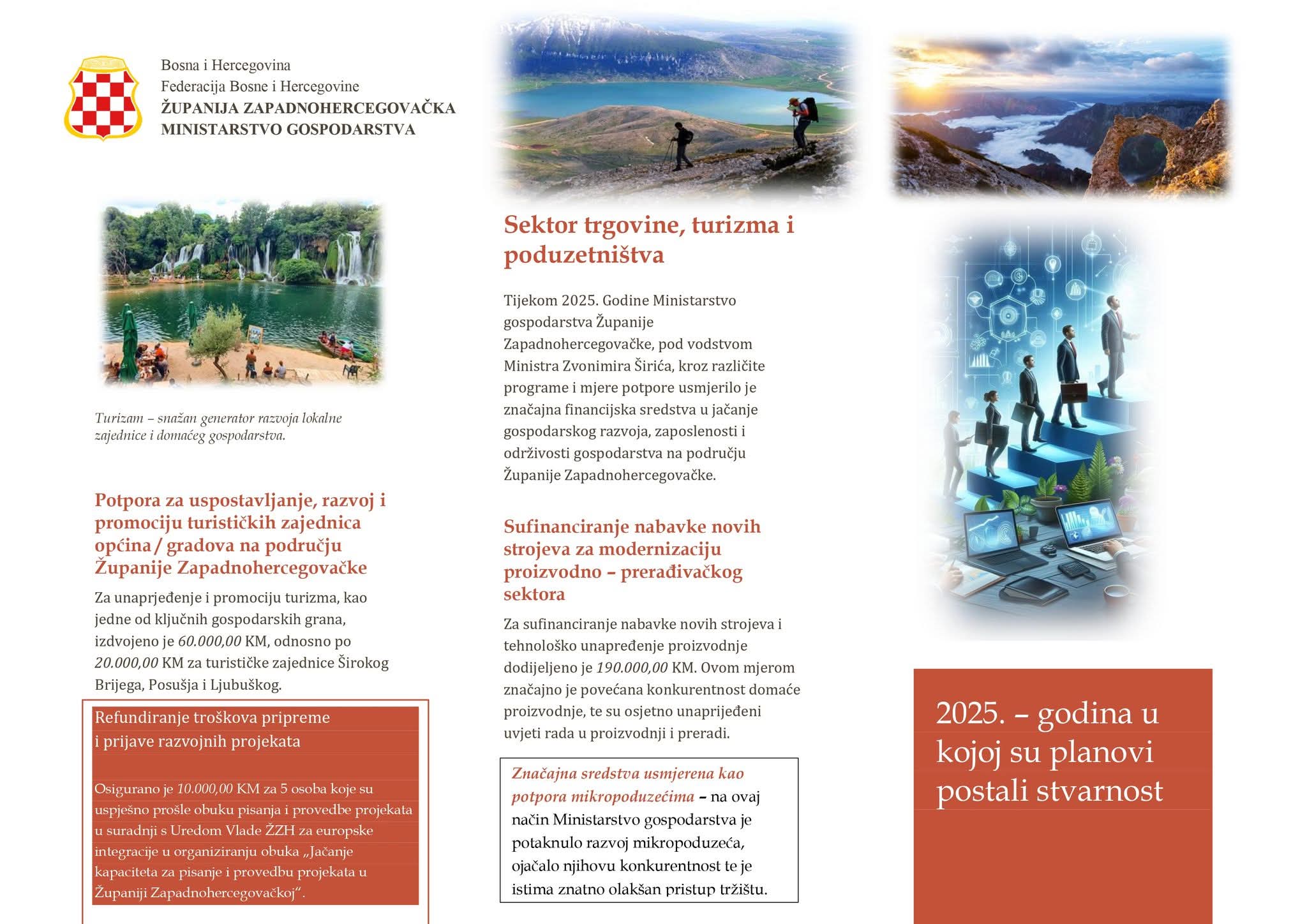 Ministarstvo gospodarstva Županije Zapadnohercegovačke predstavilo je dokument sa najznačajnijim aktivnostima ministarstva u 2025. godini.