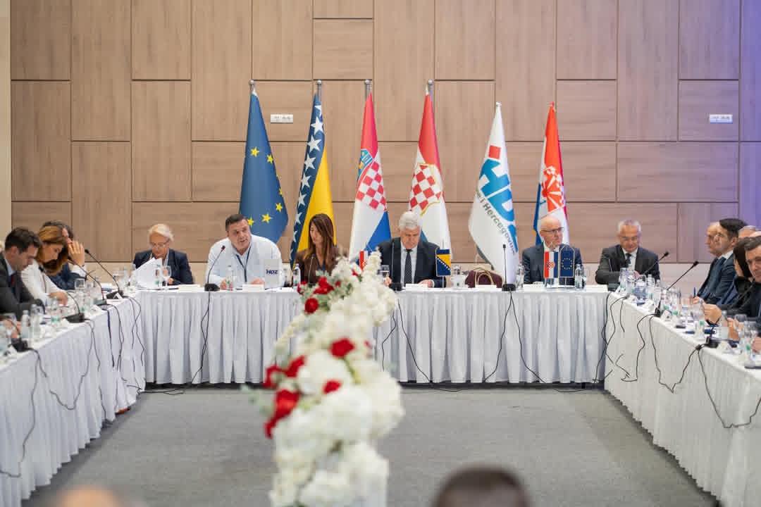 Predsjednik Čović u uvodnom je dijelu iznio analizu političkog trenutka, naglasivši važnost kontinuiteta političke koordinacije, osobito u kontekstu aktualnih okolnosti s kojima se suočava Bosna i Hercegovina. U svom obraćanju osvrnuo se na uspješnu suradnju s predstavnicima Vlade Republike Hrvatske, predvođenima predsjednikom Plenkovićem, ističući zahvalu za kontinuirane doprinose zaštiti prava Hrvata te općem razvoju BiH. Na poseban je način istaknuo usvajanje Reformske agende, ponavljajući kako je ključno održati snažan zamah u procesu provođenja reformskih prioriteta.