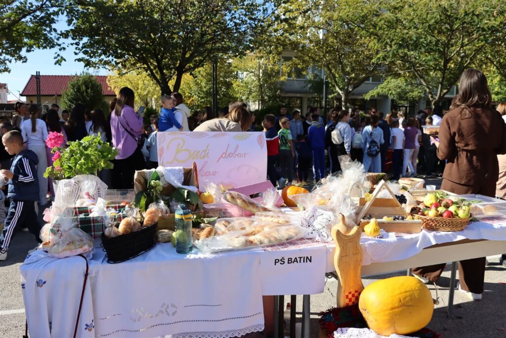 Učenici su uz pomoć roditelja te njihovih učiteljica i ove godine povodom Svjetskog dana hrane pripremili lijepo ukrašene trpeze s jesenjim plodovima i motivima naše tradicije, uz nezaobilazna peciva i slastice.