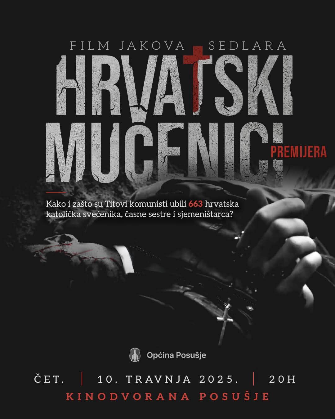 Pozivamo Vas na projekciju filma „Hrvatski Mučenici“, redatelja Jakova Sedlara, ovoga četvrtka u Posušju.