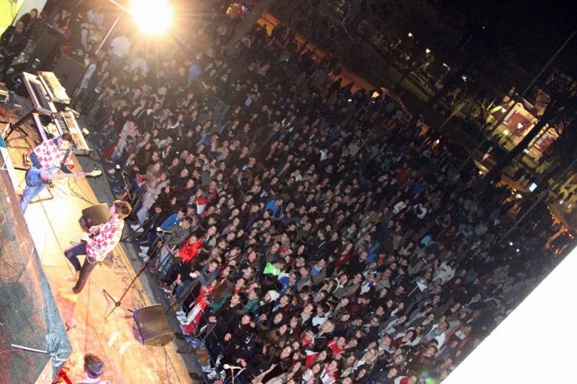 Karačić se na pozornicu ispred Hrvatskog doma Herceg Stjepan Kosača popeo u 21 sat i 25 minuta, a s oduševljenjem ga je pozdravilo više tisuća navijača.