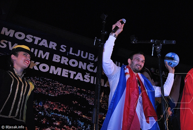 Na pozornici ga je dočekao i čestitao mu na uspjehu mostarski gradonačelnik Ljubo Bešlić.